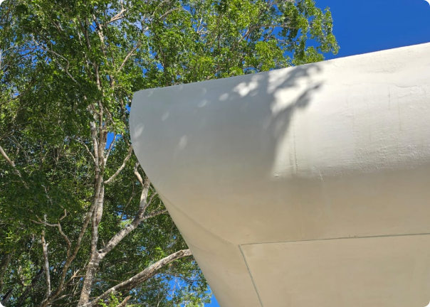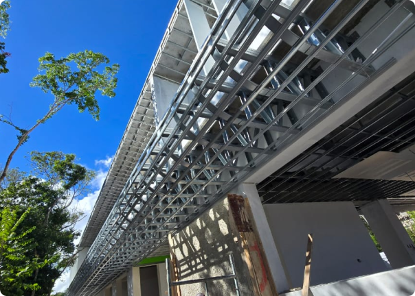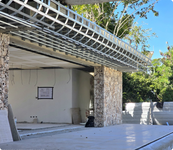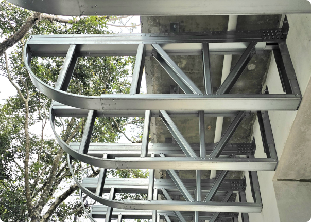 El diseño arquitectónico vanguardista de esta villa se destacó por la viga curva que rodeaba todo el perímetro de la casa. Esta viga, con aproximadamente 1.50 metros en voladizo y un radio cerrado de 0.60 m, fue diseñada por el equipo estructuralista y desarrollada con un track curvo traído desde fábrica para una ejecución rápida y limpia.