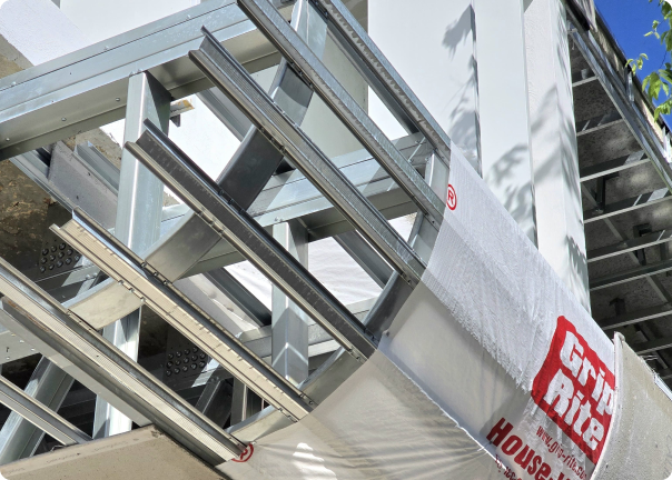 Otro de los retos fue la realización de quiebrasoles verticales de 5 cm de espesor y más de 3 metros de altura. Para controlar la esbeltez, evitar el pandeo y aumentar la rigidez de estos paneles, nuestros ingenieros desarrollaron conectores y placas de 2 y 3 mm, con tornillos expansivos para fijación a la losa.